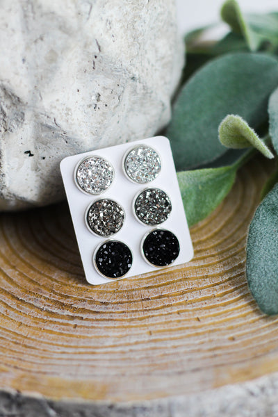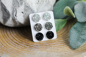 All earrings are made of lead and nickel free hypoallergenic material for sensitive ears. Metal and rubber backing clasps are included on the backs. Each piece comes on its own individual blank white cards.