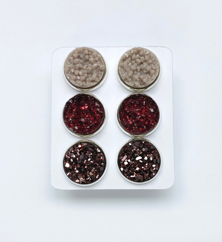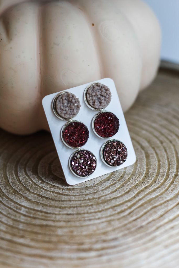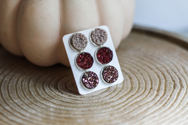 Triple Earring Set - Plum Rose